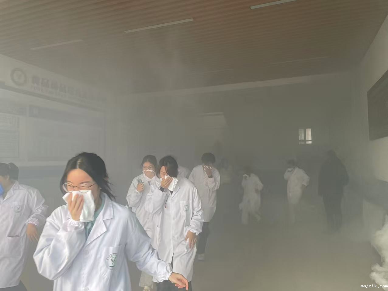 上午9时,演练正式开始。随着模拟火灾警报声响起,浓烟发生器释放烟雾模拟真实火情,各区域疏散引导员立即到位,引导人员用湿毛巾捂住口鼻,按照预设疏散路线快速、有序向指定安全集合点撤离。过程中,参与人员严格遵守纪律,不推挤、不慌乱,全程仅用3分钟便完成全员疏散。