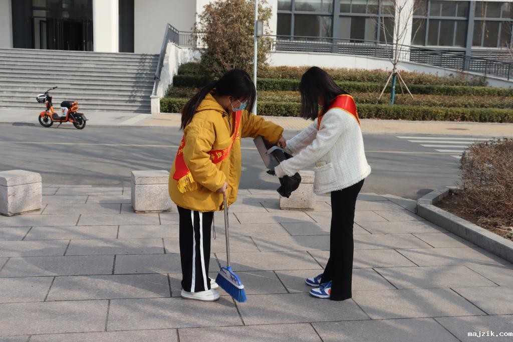 志愿服务活动中,身披红绶带的学生党员充分发挥“不怕苦,不怕累,不怕脏”的精神,拿着扫帚、簸箕、抹布等工具穿梭在校园的各个角落,对校园路面、卫生死角、绿化带进行集中清理,并对校园设施进行了擦拭清洁。大家有序分工、团结协作,捡拾塑料袋、烟头等垃圾,擦拭垃圾桶及健身器材,清理张贴的小广告,打扫操场、教学楼外等处的卫生死角。他们还将校园的共享单车摆放整齐,并呼吁同学们杜绝乱丢垃圾、随意停放车辆等不文明行为。操场上、篮球场里、教学楼外都能看到党员同志们的身影,他们所及之处,皆为“净土”,他们用实际行动一点一滴美化校园环境,建设美丽校园。活动结束后,党员同志们进行了活动总结,大家各抒己见,交流此次活动的心得感悟。