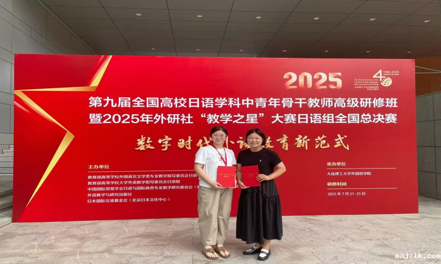 近日,2025年外研社“教学之星”大赛日语组全国总决赛落下帷幕,我校外国语学院教师团队闪耀赛场,吴周阳老师荣获全国决赛二等奖,孙小云老师荣获全国决赛三等奖,以实力书写教学新篇。