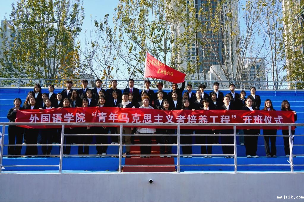 为深化青年马克思主义者培养,发挥跨学科协同育人优势,11月26日,外国语学院联合文法学院、健康学院在操场举办“青马扬帆启新程,知行合一践新知”青马工程骨干班开班仪式。健康学院党总支书记刘大华、文法学院党总支书记曹钊庆、外国语学院党总支副书记陈秀慧、健康学院团总支书记董瀚文、文法学院团总支副书记纪俞舟、外国语学院辅导员郭亚军、青马工程全体新学员参加本次开班仪式。
